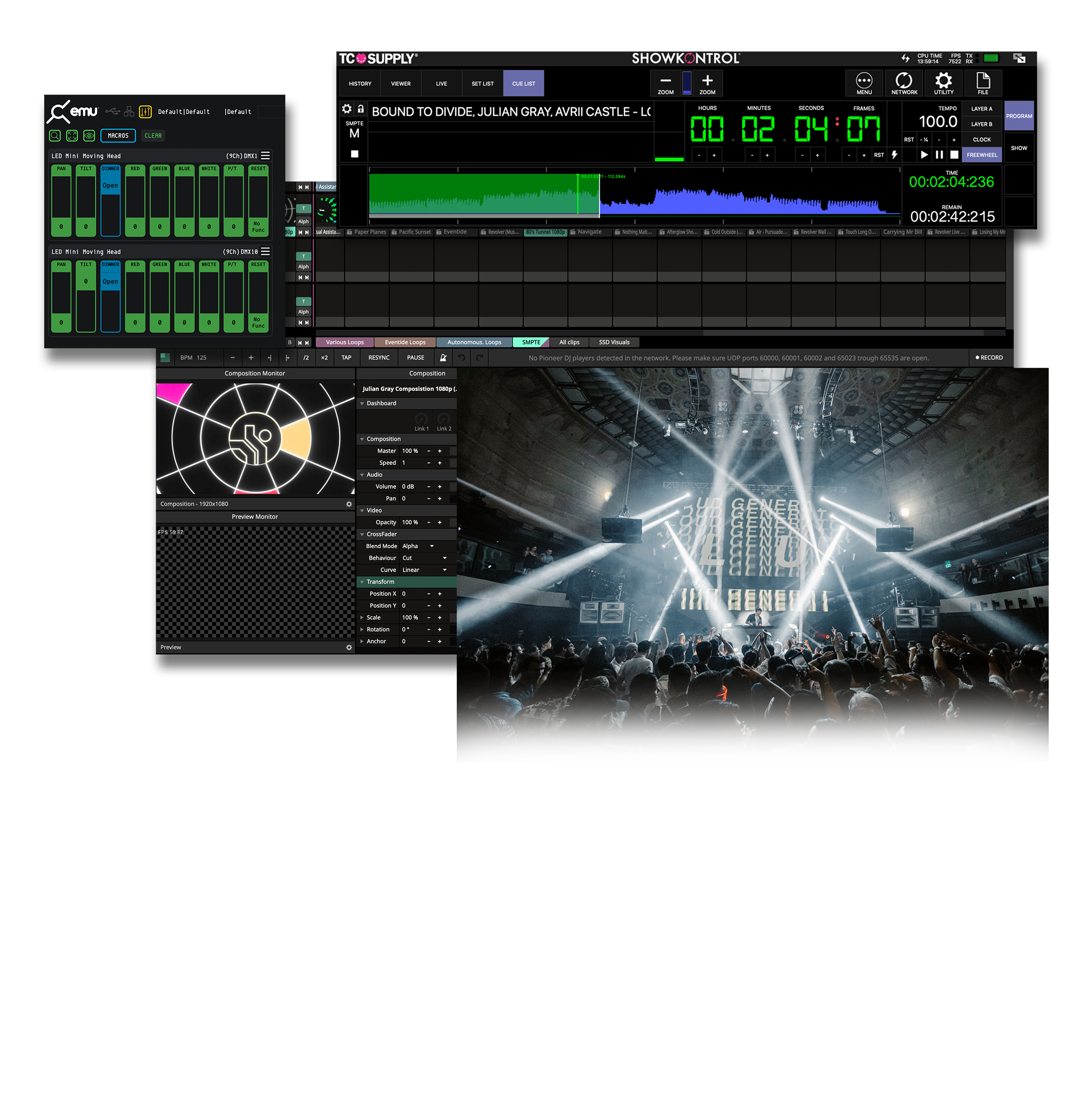 Create fully synced audio-video experiences, perform live with Ableton Live, fully synchronized DMX controlled lighting installations, Timecode/SMPTE synced live sets and more.