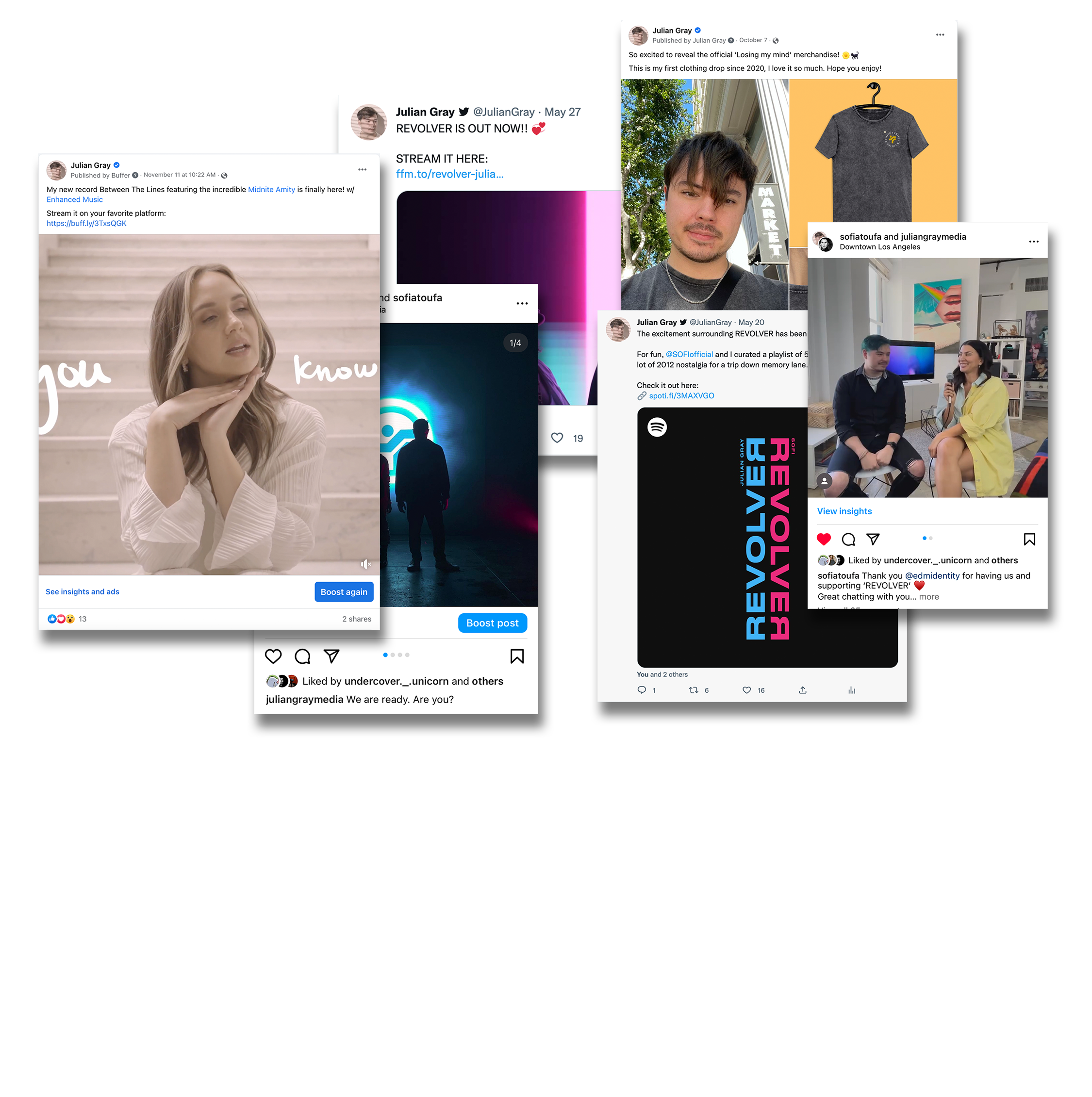 We offer an end to end social media marketing solution for your next project. Let's work together to create a solid social media strategy for your brand's next release, and we'll create all of the content necessary to execute it.